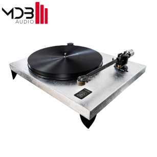 Płyta z drewna włoskiego orzecha połączona jest z trzymilimetrową stalową płytą oraz dwucentymetrową wierzchnią warstwą z polerowanego czarnego akrylu. Całość kryje w sobie cały elektroniczny system gramofonu....